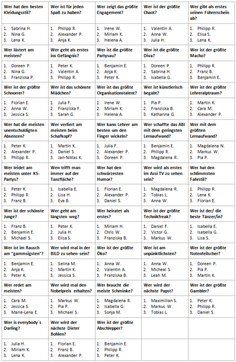 Wir sind die Jahrgangsstufe des Monats, weil wir immer gut drauf sind und alle zusammenhalten. Wir haben so viele unterschiedliche Charaktere bei uns. Dadurch, dass wir ein kleiner Jahrgang sind, müssen wir Abiball, Abifetz, Abifahrt und Projekte, um Geld dafür einzunehmen, gut planen und alle müssen mithelfen. Diese kleine Anzahl an Schülern im Abiturjahrgang 2013 macht uns zugleich auch einzigartig. Wir machen aus allem das Beste!!!